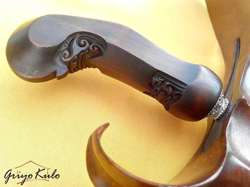 Ketiga, karena pertimbangan estetika. Bilah yang berpamor ramai byor, memang lebih baik dipasangkan dengan ganja wulung agar keindahan pamor terfokus pada wilah.