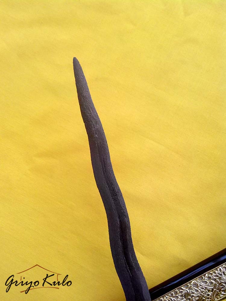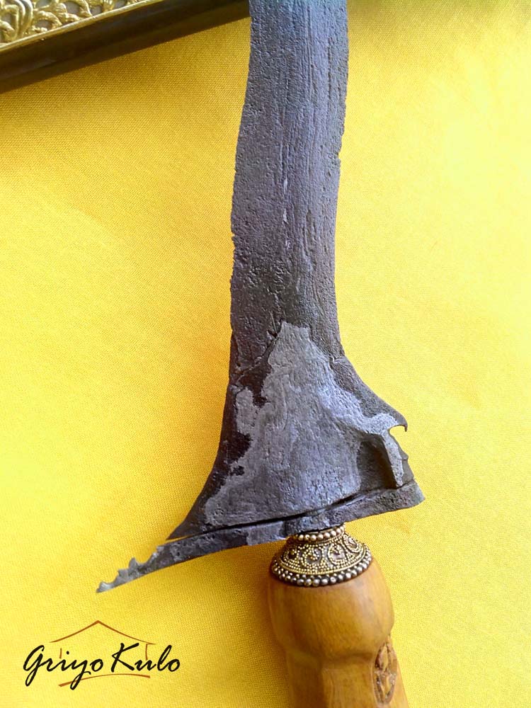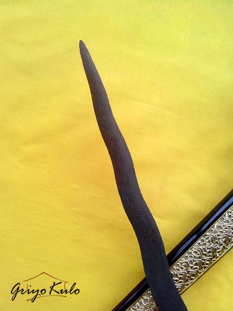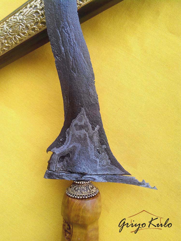 Besi yang halus kehijauan (nyamber lilen), dengan spasi tempa yang rapat dan halus menunjukkan kematangan tempa yang mumpuni dari sang Empu. Gandiknya yang pendek miring (amboto rubuh) adalah khas keris-keris tangguh sepuh, bentuk kembang kacang kecil seperti kecambah, wasuhan pamornya tampak pandes, dalam rasa pandangnya tampat kesit, luwes namun angker. Panjang bilahnya berukuran sedang, luknya tidak begitu rapat, makin ke atas makin ramping sehingga berkesan runcing, condong lelehnya miring tetapi berkesan satriya, Pada bagian ganja rata, ri pandhan huruf dha nya jelas. Warangka branggah dengan pendok slorok krawangan lapis emas dan kemalo hitam (dahulu biasa dipakai oleh panewu mantri) yang menyertainya sudah sangat cocok mendampingi. Tidak ada pekerjaan rumah lagi.