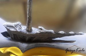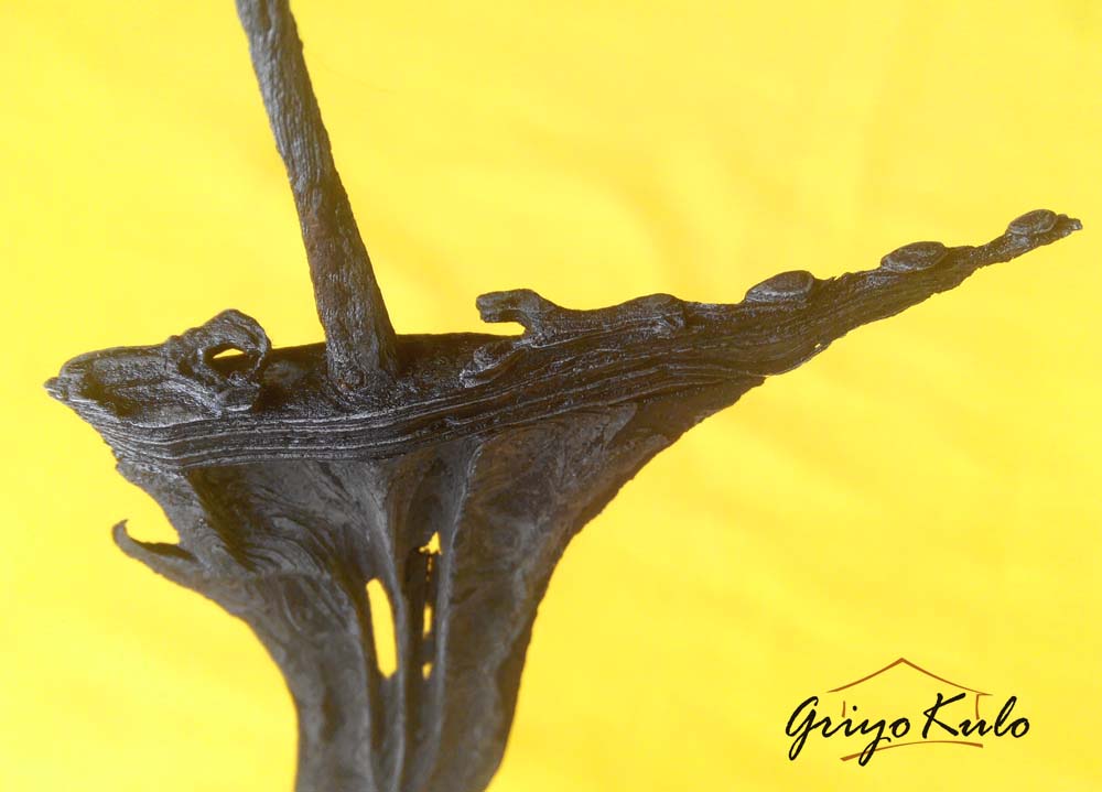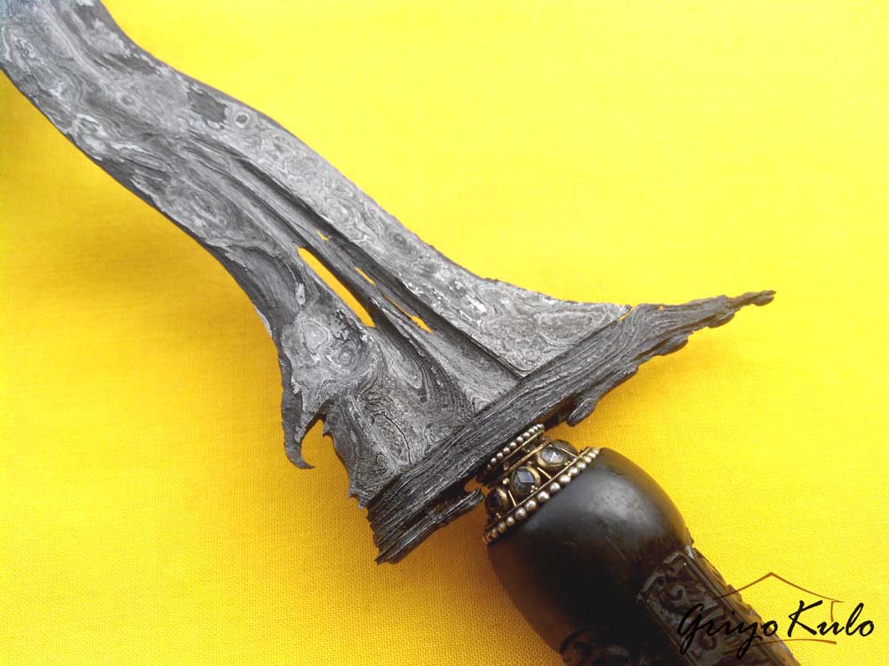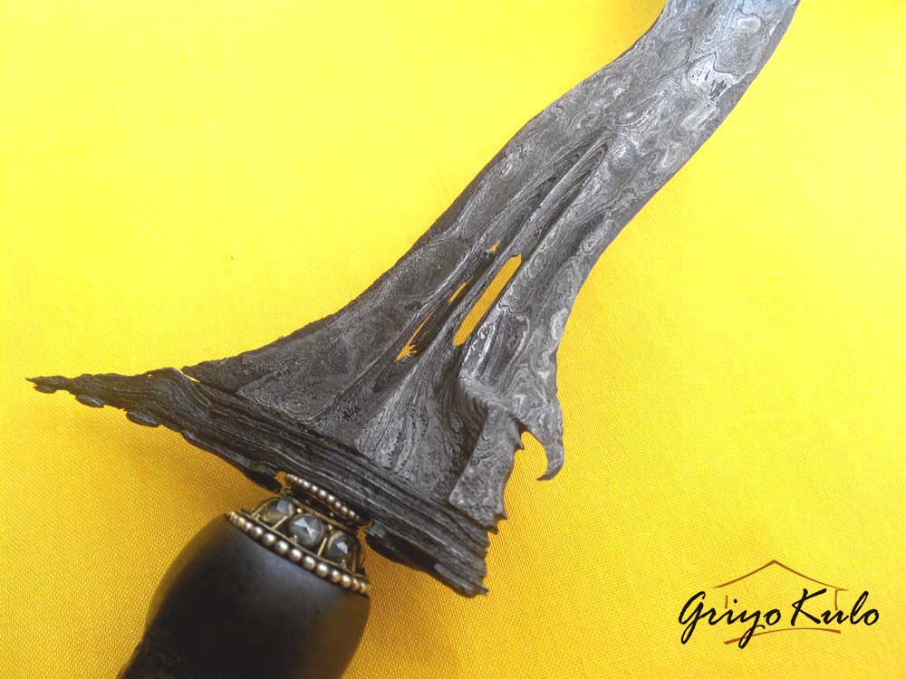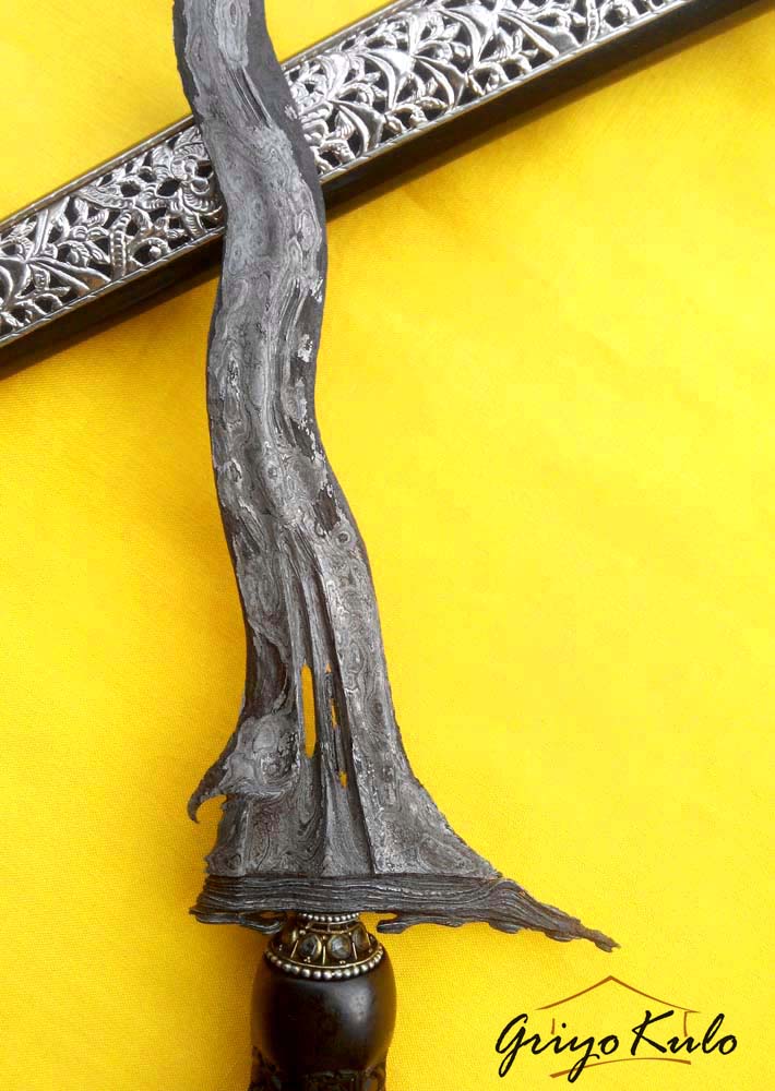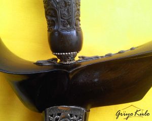 Namun seperti pepatah “Tak ada gading yang tak retak”, bagian sogokan yang dibuat agak dalam dengan janur tipis oleh sang Empu, juga logam (emas?) yang menutupi gajah singo harus merelakan kecantikannya digerogoti oleh sang Batara Kala (waktu). Untuk pewarangan memang Penulis sengaja untuk request tukang jamas untuk “digosongkan”. Hanya sebuah preference (pilihan), juga sebuah kearifan lokal para pinesepuh jaman dahulu untuk tidak terlalu mengumbar pamer (show off) apa yang dimiliki. Tidak perlu pujian dari orang lain jika kita tahu kualitas diri sendiri!
