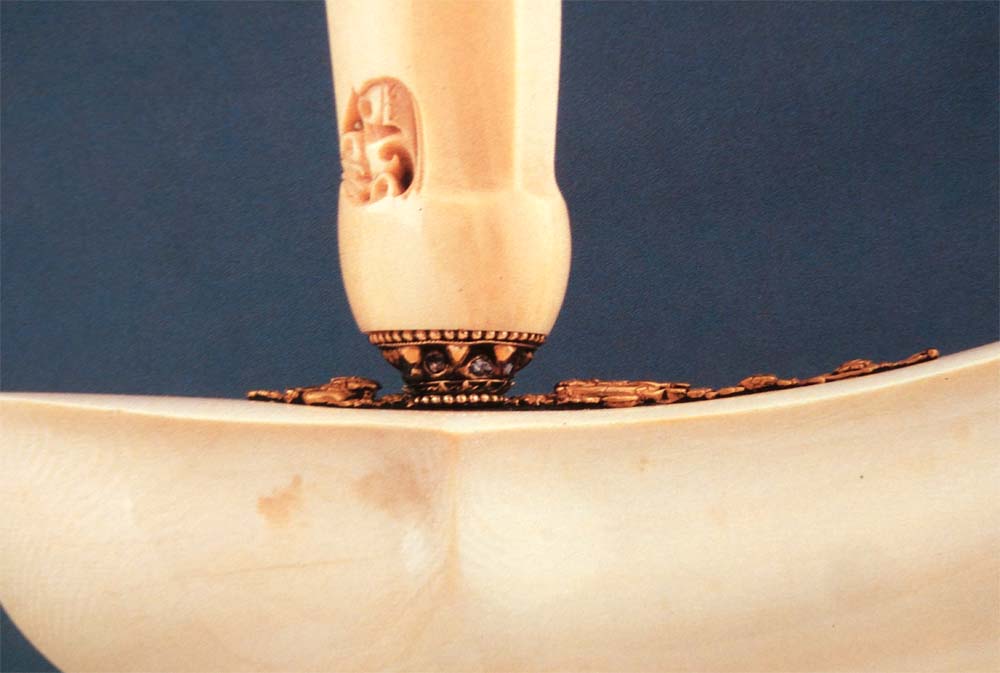 Pada kinatah gajah singo sebelah kiri emas sudah tidak ada, foto sebelah kanan kondisi wutuh, sumber foto : Buku Keris Jawa Antara Mistik dan Nalar