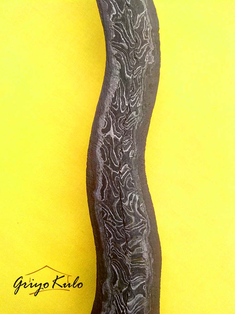 TENTANG TANGGUH, Alam selalu mengajarkan beragam kearifan. Itu sebabnya para Pujangga, orang-orang Bijak sampai ke para Empu kerap melekatkan simbol-simbol alam itu di dalam berbagai karya mereka. Seperti keris dhapur sempana pamor ganggeng kanyut ini, bisa dikatakan tangguh muda (yogyakarta) setelah palihan nagari Mataram. Luk-nya manis tidak rengkol tidak kemba (samar), dengan condong leleh agak tegak, sekar kacang cenderung tidak dikikir dengan rapi, terkesan lugu dan bentuknya agak panjang maju ke depan, jalen moncer lancip, sekilas malah mirip tangguh ngentho-entho. Bagian gonjonya tampak agak lurus kurang melandai di bagian ekor berbeda halnya dengan keris mataram muda, greneng malah hampir mirip keris madiun diamana bagian huruf dha tidak kentara. Besi bilahnya tampak pulen, terasa halus jika diraba karena sudah menggunakan besi tanur tinggi. Pasikutannya cenderung sederhana tapi wangun (enak dilihat).