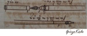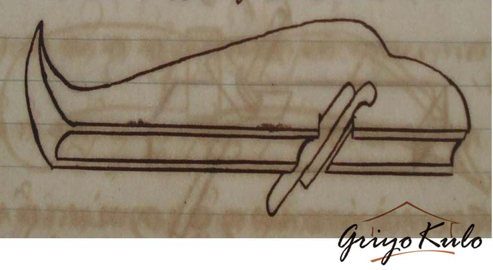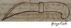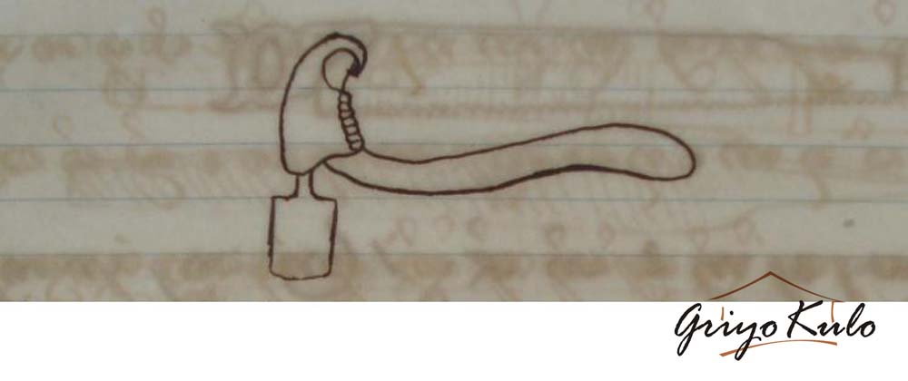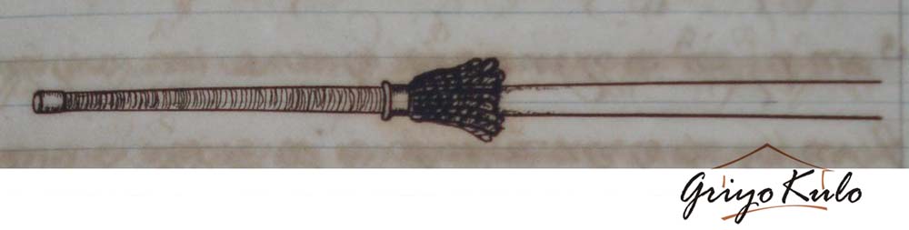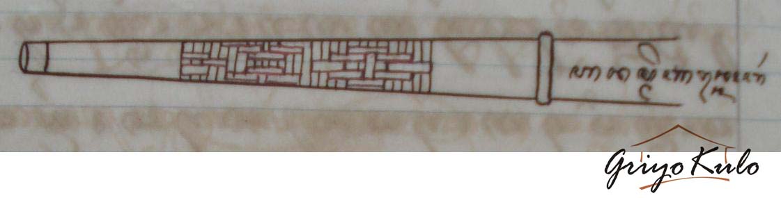 4. Pasah sugu 2 biji, 1 grabahan, panjangnya 1½ lebar tangan, 1 pangalus, panjangnya 2 lebar tangan, pucuknya agak melengkung ke atas bentuknya seperti dibawah ini.