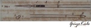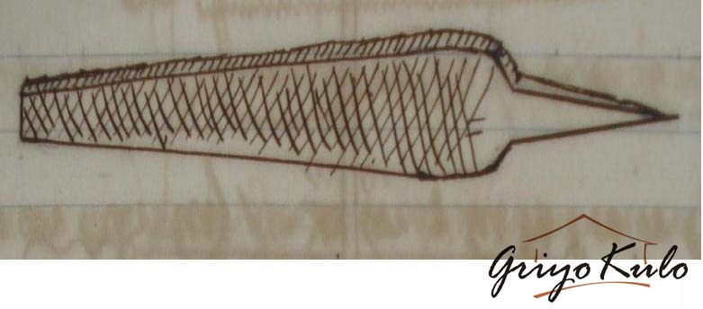 7. Jara, untuk melubangi tempat pesi tombak, bentuknya seperti di [hal.22] bawah ini: