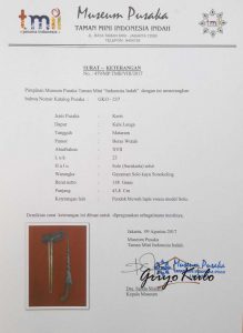 5. Sertifikasi : Museum Pusaka TMII No : 479/MP.TMII/VIII/2017
