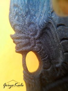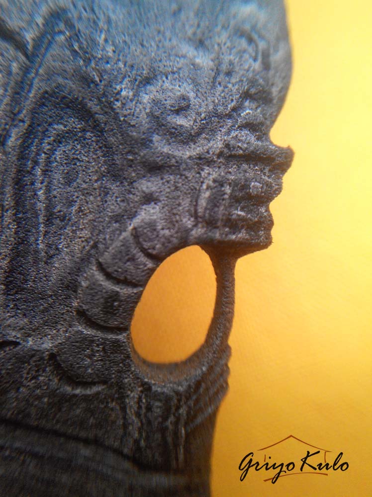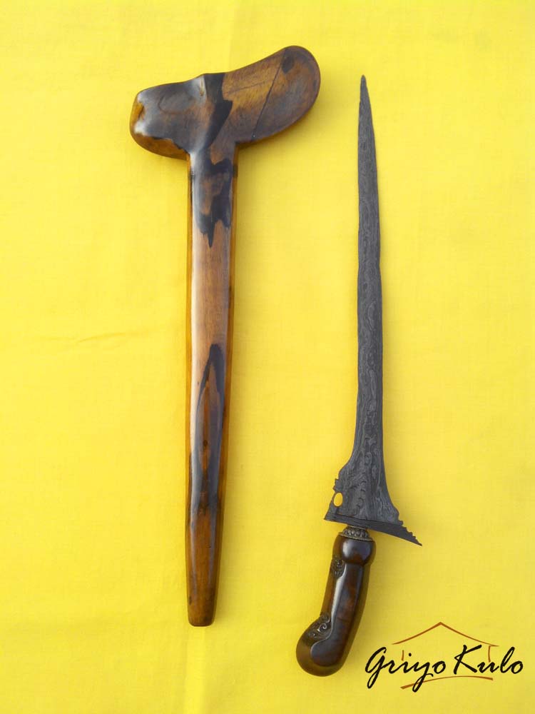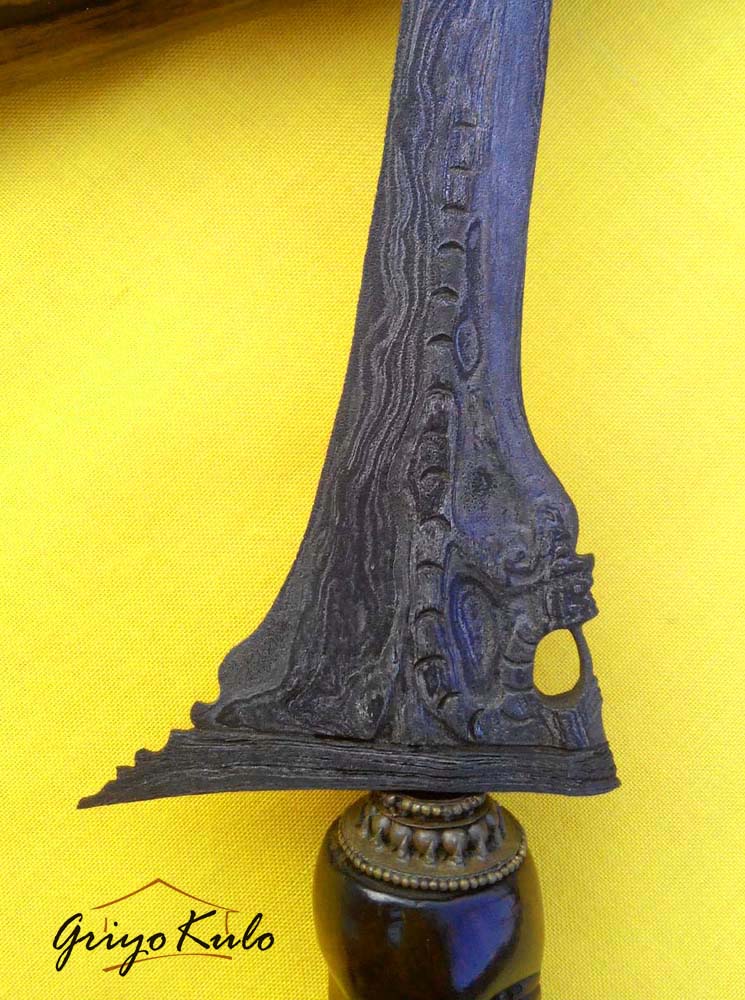 Hal-hal menarik perhatian adalah dari sisi depan dan belakang bentuk mulut naga yang tidak membuka, seolah mempunyai jumlah bibir tiga (3), seperti bentuk semar dalam wayang keling khas pekalongan dimana pengaruh Hindu-Budhanya Majapahit masih kentara. Bagian mahkota, sumping dan kalung sebagai atribut kelengkapan seorang Raja atau pemimpin meskipun dalam tatahan yang sederhana namun masih bisa terbaca dengan jelas. Kepala naga sedikit mendongak dibuat sesuai pakem keris naga pada umumnya sebagai simbol kewibawaan, kepercayaan diri, dan sadar dengan tanggung jawabnya sebagai seorang pemimpin. Bagian badan distilasikan secara sederhana tanpa kehilangan makna dengan bentuk guratan-guratan sebagai penanda sisik sewunya (penolak 1000 bahaya). Pada bagian wadidang ricikan eri pandan atau greneng-nya begitu kentara pesisirannya (Cirebon). Warangka timoho dan deder werut-nya sudah cukup apik sebagai abdi mendampingi sang pusaka tuannya.
