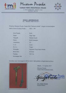 - Sertifikasi : Museum Pusaka TMII No : 498/MP.TMII/VIII/2017