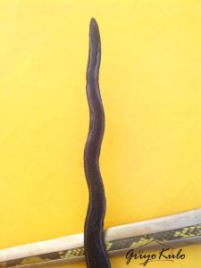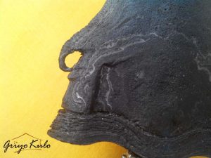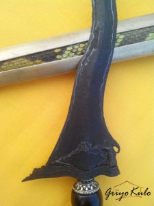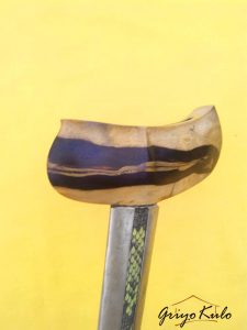 Pada warangka ini tak cukup puas dengan satu garis yang melingkar (kendhit), melainkan dua sekaligus. Warna peletnyapun sedikit berbeda dengan pelet asem yang biasanya lebih berwarna kemerahan, sedangkan pada pelet ini lebih berwarna kecoklatan mirip kayu timoho yang berasal dari daerah Jawa Timur.