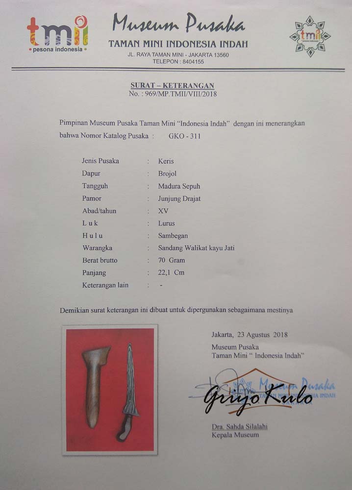 5. Sertifikasi Museum Pusaka No : 969/MP.TMII/VIII/2018