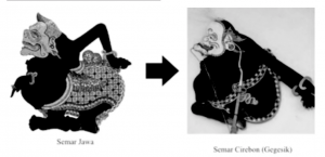 Namun secara bentuk, semar yang ada pada tombak ini lebih mendekati pakem semar Jawa dibandingkan pakem semar Cirebon (seperti yang tertulis pada Surat Keterangan diperkirakan berasal dari Tangguh Cirebon). Di Cirebon, Semar digambarkan sangat bulat dengan wajah yang lebih besar dan bulat pula. Jika di Jawa, Semar memakai kain yang menutupi hampir seluruh badan bagian bawah, di Cirebon Semar digambarkan berbeda, tidak menutupi seluruh badan bagian bawah. Dalam tradisi pedalangan Cirebon Semar terasa sangat istimewa, ada sebagian dalang bahkan membungkus semar dengan kain putih, sebelum membuka kain tersebut sang dalang melantunkan sebuah syair dalam bentuk tembang suluk.