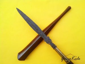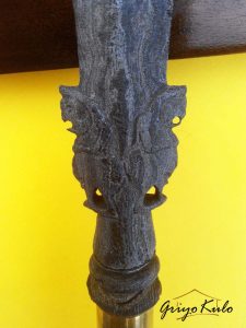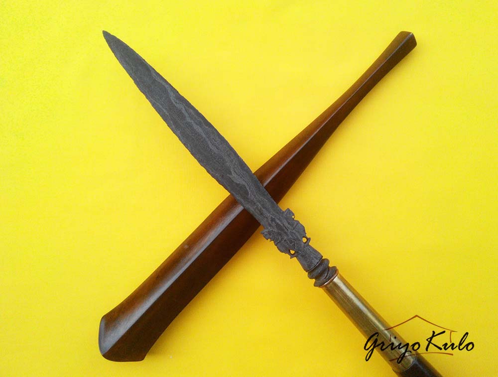 7. Dimensi : panjang bilah 27,5 cm, panjang pesi 14,5 cm, panjang total 42 cm, landeyan 52,5 cm