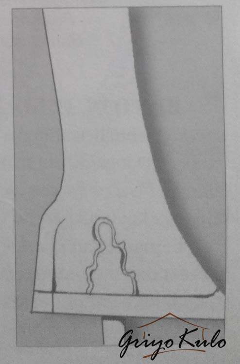 lekukan yang ada di bilah seperti bekas pijitan jari tangan