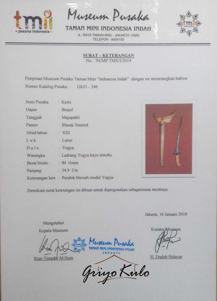5. Sertifikasi Museum Pusaka No : 94/MP.TMII/I/2019