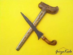7. Dimensi : panjang bilah 22 cm, panjang pesi 6 cm, panjang total 28 cm