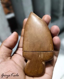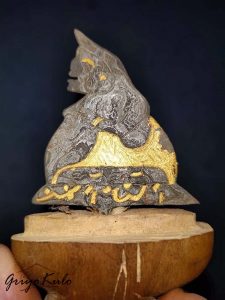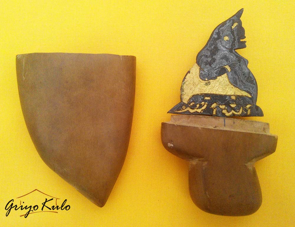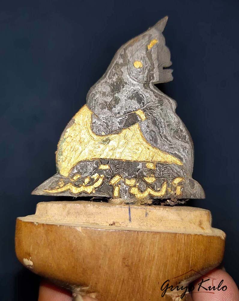 Jimatan ini mungkin bisa dikatakan mirip sebilah keris, karena memiliki bentuk simetris dan ‘seretan garis” di bawah bagian kaki semar, seolah dimaksudkan sebagai ganja sepang iras. Namun tidak seperti keris pada umumnya yang meliuk atau lurus dengan pucuk lancip karena panjangnya hanya sekelingking saja. Tak cukup sampai disitu, terdapat serasah dari emas (lawasan) yang sudah diuji menggunakan batu uji dan cairan uji. Serasah itu selain di bagian mata, telinga, gelang tangan dan kaki serta bagian jarik juga membentuk rajah kaligrafi takbir Allahu Akbar di kedua sisinya. Seolah akan selalu menguatkan batin pemiliknya untuk tidak perlu takut atau kuatir dalam hidup karena engkau mempunyai Allah yang lebih besar dari segala masalahmu. Warangka yang ada pun sangat unik, berbentuk patran (daun) seukuran genggaman tangan. Nyaman untuk digenggam kemana-mana. Semakin istimewa karena terbuat dari cendana tim-tim yang tersohor wanginya. Menandakan benar-benar dimulyakan oleh pemilik sebelumnya.