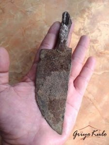 CATATAN GRIYOKULO, bila dibandingkan dengan bentuk wedhung yang kita kenal sekarang ini mulai dari era demak hingga nom-noman memang tampak berbeda. Perbedaan tersebut salah satunya dapat ditunjukkan melalui bagian pesi yang rata-rata berbentuk segilima dengan sedikit kecondongan (menekuk), sering pula terdapat semacam kelopak (kudhup turi) tepat di bagian bawah pangkal bilah. Selain itu pada bagian sor-soran wedhung umumnya memakai hiasan semacam wideng atau takikan greneng. Sedangkan pola garap yang terdapat pada wedhung ini selain lebih kecil juga sangatlah sederhana, terkesan primitif dan justu lebih mendekati bentuk belati arca siwa bairawa. Sangat mungkin era dari wedhung temuan ini lebih tua daripada yang tertulis dalam sertifikasi.