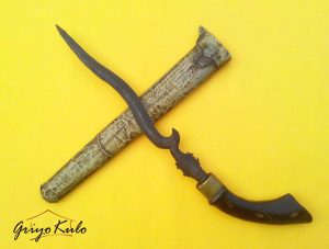 KUJANG LANANG, Sepintas bentuknya hampir mirip dengan kujang geni. Namun apabila diamati lebih seksama, bentuk kujang lanang lebih menyerupai tunas pohon sedangkan bentuk kujang geni sesuai penamaannya memang lebih menyerupai lidah api yang menyala. Selain itu bentuk kujang geni pada bagian di bawah tadah tampak lebar daripada kujang lanang, dan memiliki mata/lubang.