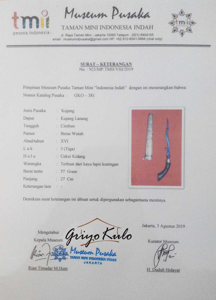 5. Sertifikasi Museum Pusaka No : 923/MP.TMII/VIII/2019