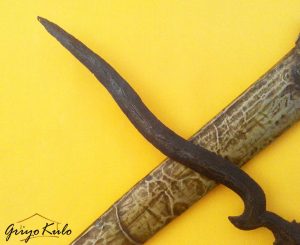 7. Dimensi : panjang bilah 22,2 cm, panjang pesi 4,8 cm, panjang total 27 cm