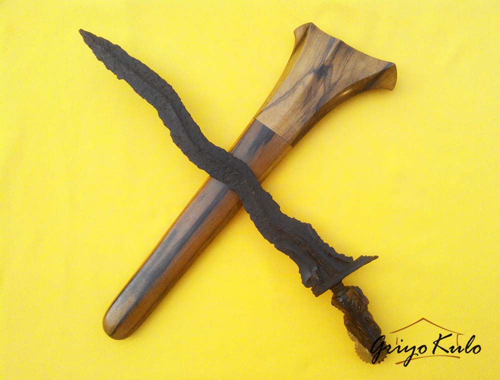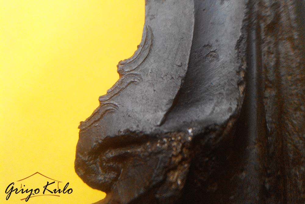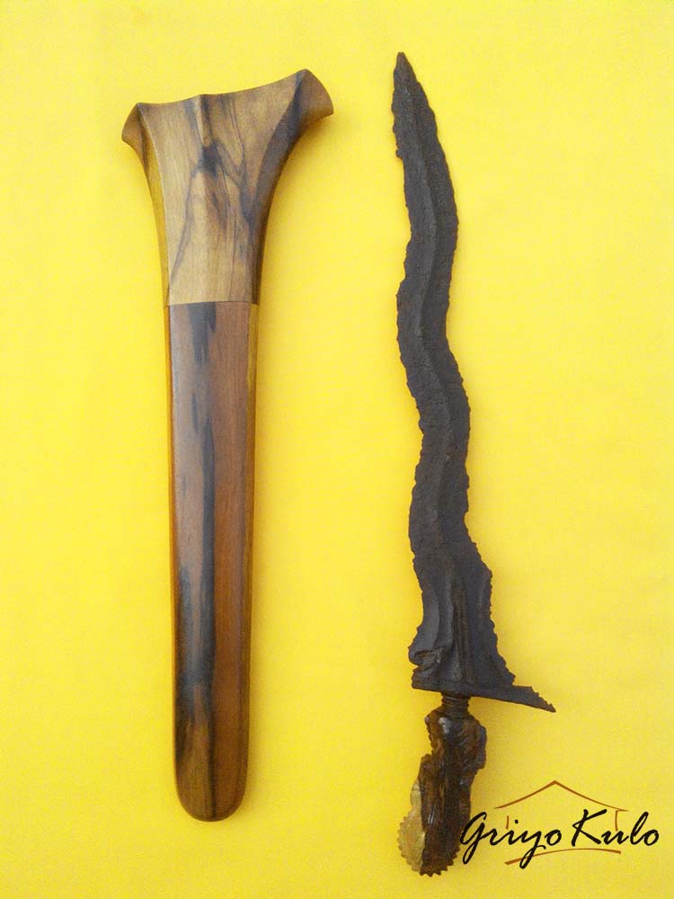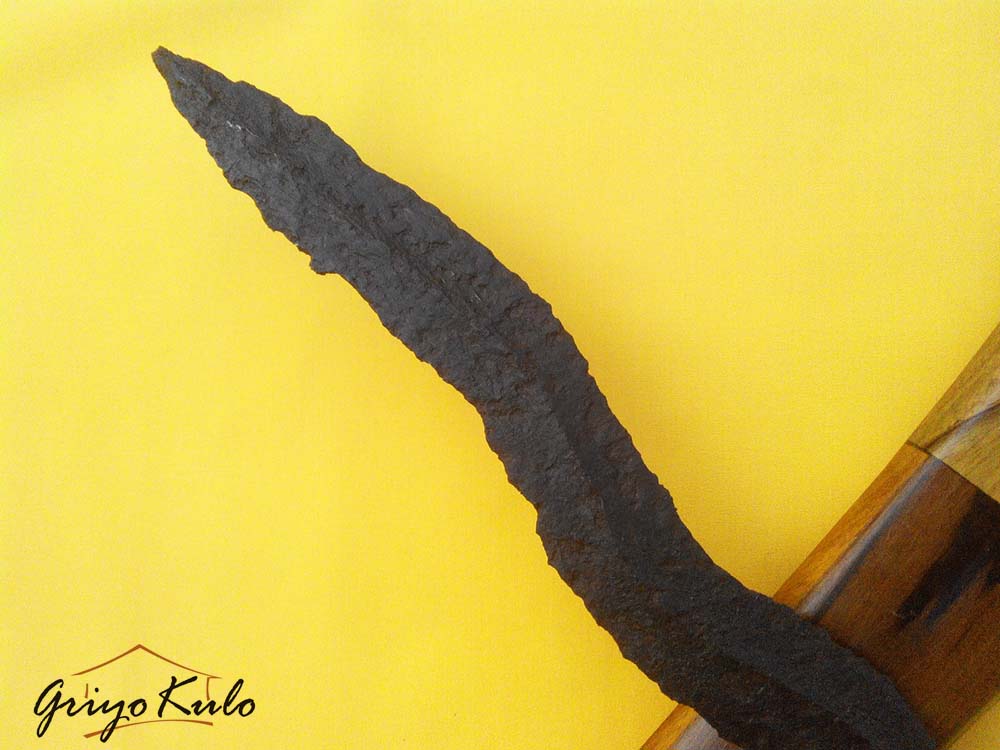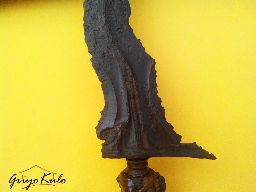 Dalam “genre pusaka temuan” tentulah semua akan sepakat jika keris ini masuk dalam kategori utuh, dari ujung hingga ke bagian pesi. Semuanya tentang keris ini terbilang istimewa, mulai dari materialnya hingga ke ricikan-nya digarap secara tegas. Salah satu menarik perhatian Penulis adalah adanya semacam rêrênggan (hiasan) di atas sekar kacang berupa garis ringkel/sulur-suluran. Entah mengapa keris-keris temuan yang secara fisik mungkin sudah tidak dalam kondisi terbaiknya dan belum tentu setiap orang akan mampu menyelami keindahannya yang berselimut patina, namun harus diakui justru memancarkan guwaya wingit yang lebih dan aura perbawanya sendiri. Seolah pantang redup dalam usia senjanya.
