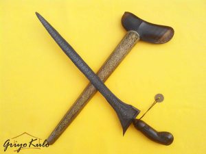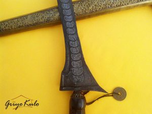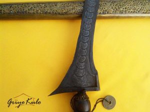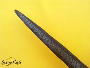 - Dimensi : panjang bilah 36,7 cm, panjang pesi 6 cm, panjang total 42,7 cm