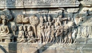 Lalu, sejak kapan sebenarnya pataka ini mulai hadir di Nusantara? Sedikit menelisik ke belakang, ternyata Candi Borobudur sebagai salah satu peninggalan arkeologis memberikan bukti lekatnya pataka terhadap sejarah Bangsa Indonesia. Candi yang dibangun pada masa Dinasti Syailendra pada abad ke IX ini memiliki bukti relief di salah satu dindingnya yang menggambarkan tiga orang hulubalang membawa pataka/umbul-umbul berwarna gelap dan terang, diduga melambangkan warna merah dan putih.