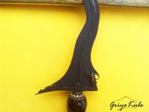 CATATAN GRIYOKULO, Seperti keris Majapahit peralihan umumnya, ketika pusaka dilolos dari warangkanya terasa ringan seperti kapas. Besinya hitam sulak biru menampakkan serat yang sangat halus padat, namun lembut jika diraba berpadu dengan pamor nyeprit di beberapa tempat.