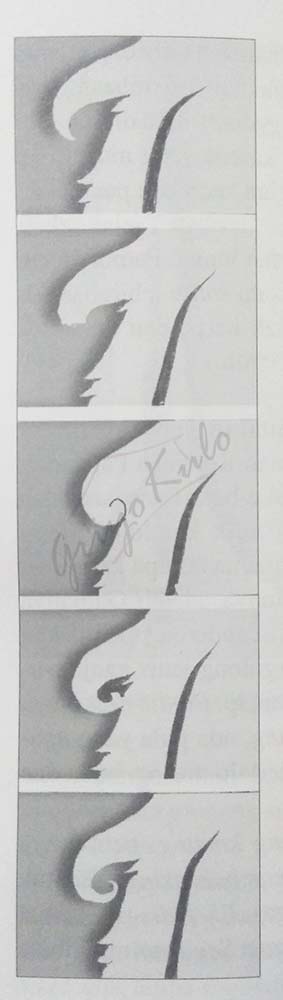 Ragam Bentuk Kembang Kacang, dari atas ke bawah : kembang kacang yang nguku bima, pugut, gatra, bungkem, dan nggelung wayang (sumber : Ensiklopedi Keris hal 228)