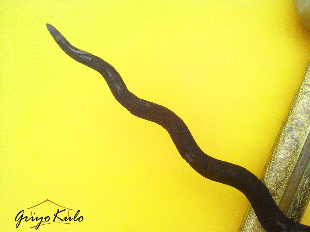7. Dimensi : panjang bilah 33,3 cm, panjang pesi 7,2 cm, panjang total 40,5 cm