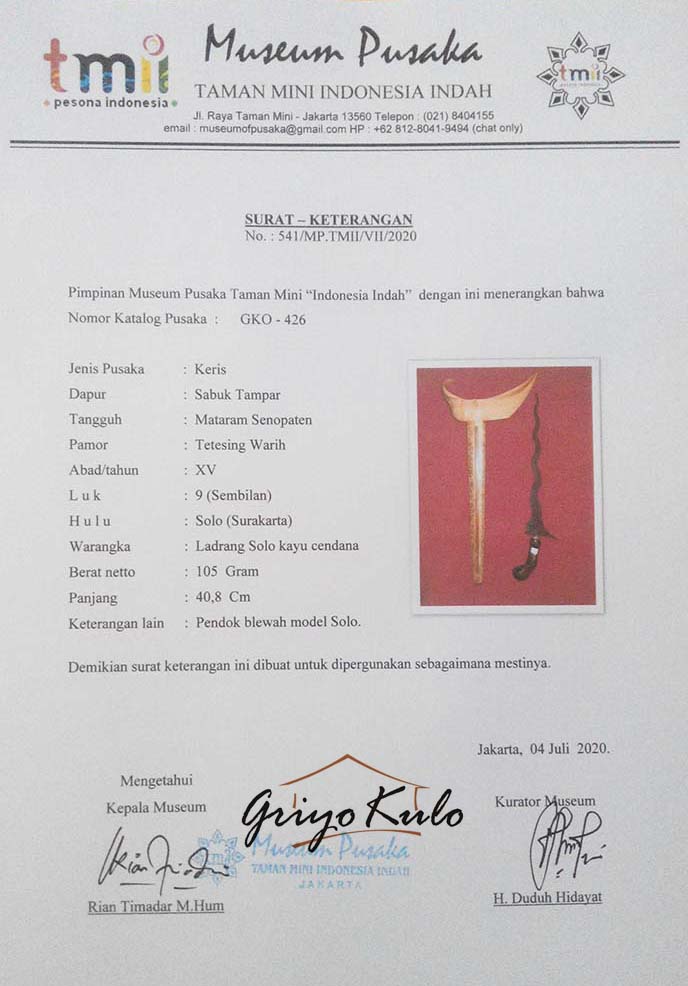 5. Sertifikasi Museum Pusaka No : 541/MP.TMII/VII/2020