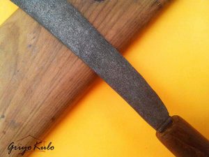 7. Dimensi : panjang bilah 33,2 cm, panjang pesi 7,3 cm, panjang total 40,5 cm