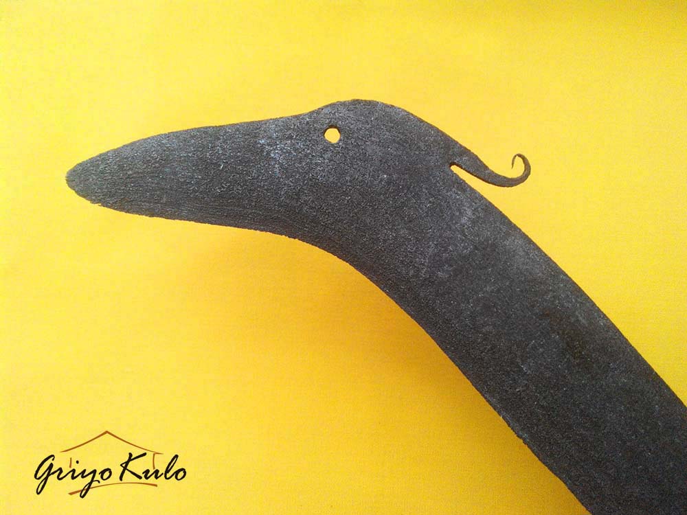 CATATAN GRIYOKULO, jika umumnya kujang pakarang/congkrang bentuknya menyerupai kaki congcorang atau belalang sembah maka pakarang yang satu ini justru lebih memiliki kedekatan morfologi dengan cangak. Kekhasan cangak terlihat melalui surai jambul di kepalanya. Banyaknya jumlah Cangak merupakan indikator gemah ripah loh jinawi dalam bentuk ketersedian pangan, yaitu ikan dan kualitas air di suatu wilayah tersebut. Melihat kecantikan, dan sifat-sifat unggul burung satu ini dalam hubungannya dengan alam membuat Empu-empu zaman dahulu terinspirasi membuat sebuah pusaka dengan role model burung cangak.