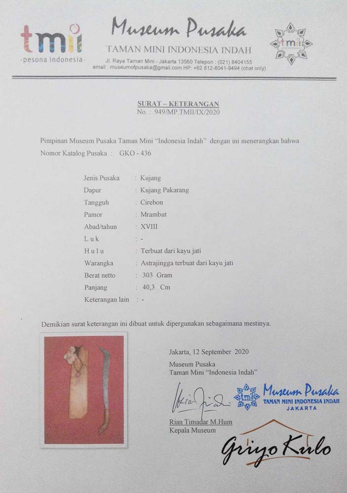 5. Sertifikasi Museum Pusaka No : 949/MP.TMII/IX/2020