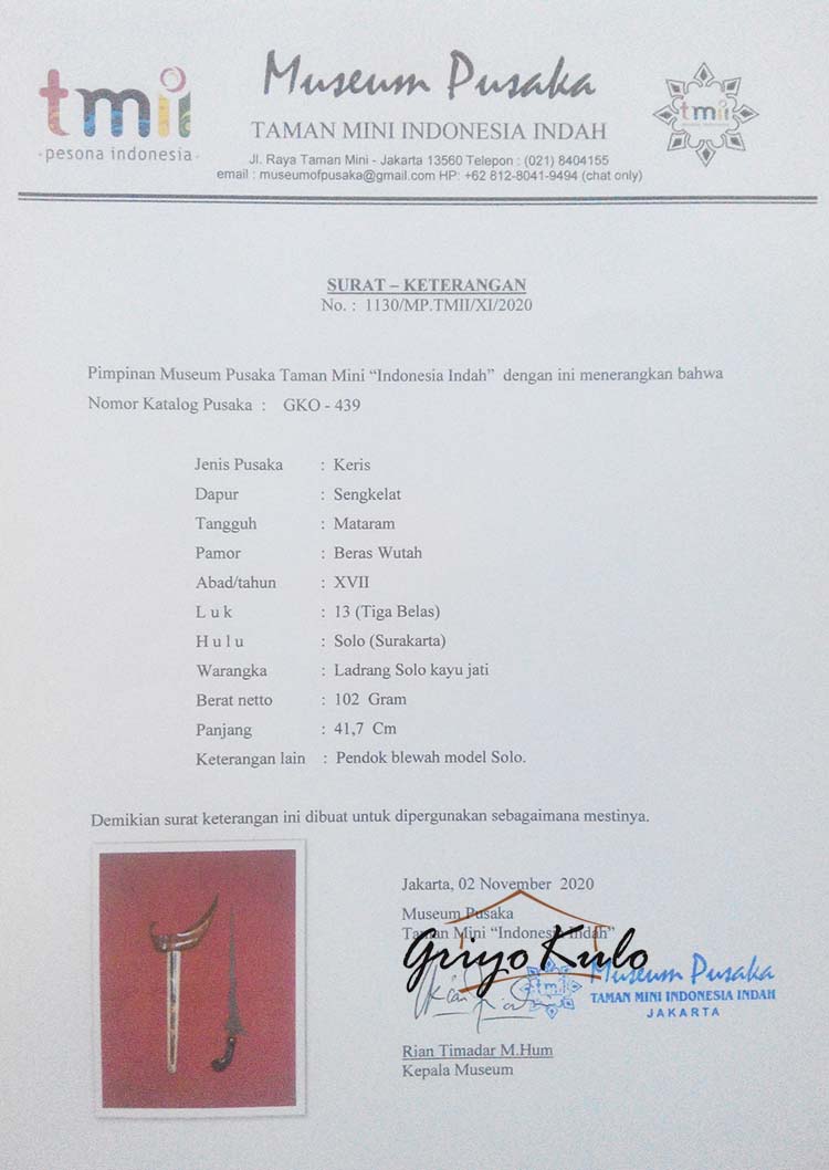 5. Sertifikasi Museum Pusaka No : 1136/MP.TMII/XI/2020