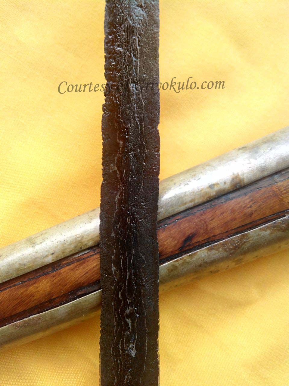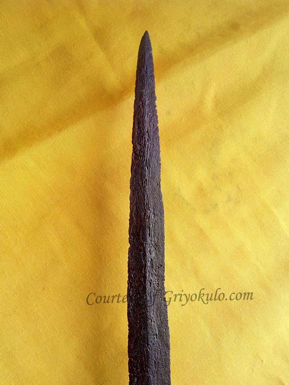 KERIS DUSUN, Tanpa bermaksud mengecilkan arti sebuah warisan budaya dan peradaban, keris ini kami sebut sebagai “keris dusun‘ dan memang sengaja kami tampilkan apa adanya. Dari sandangan (warangka, mendak, pendok) kami biarkan lamen apa adanya tanpa sentuhan fisnishing ulang. Penampilannya begitu bersahaja dan sederhana menggambarkan keris-keris dusun pada umumnya. Korosi menghias bilah juga kami tampilkan apa adanya. Kami sangat menghargai keris “ori sepuh tanpa owah-owahan”, menabukan mengowah-owahi dengan menggesud (merapikan) wilah hanya untuk memperoleh tampilan keris yang lebih cantik ataupun dengan cara-cara lain. Sangat cocok bagi Anda yang mendambakan sebuah keris sepuh yang syarat akan kedalaman makna. Sebuah keris yang menjadi piandel untuk dijadikan tuntunan hidup dan bertingkah laku.