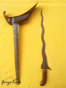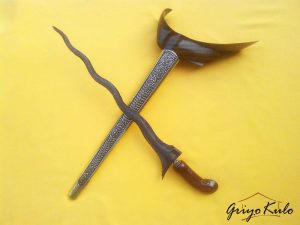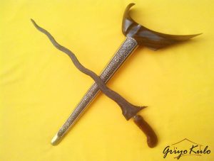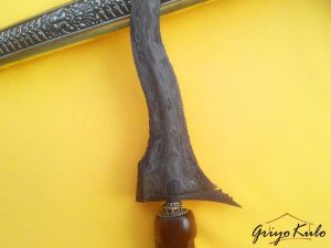 7. Dimensi : panjang bilah 34,5 cm, panjang pesi 6,5 cm, panjang total 41 cm