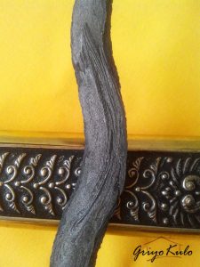 CATATAN GRIYOKULO, Mereka yang gemar menangguh keris mulai dari bagian gonjo atau mereka yang kadang “kepo” dengan isi bilah yang ada dalam warangka, penampakan wuwungan gonjo keris kidang mas ini terbilang menarik. Bentuknya yang nguceng mati dengan bagian gendok (perut) yang gendut berpadu dengan sirah cecak yang nguncup. Dari bentuk wuwungan gonjo-nya saja sudah cukup untuk menghadirkan obrolan seru mengenai tangguh. Ada yang menangguh Majapahit hingga demak, bahkan ada yang mengira keris ini ber-gonja iras.