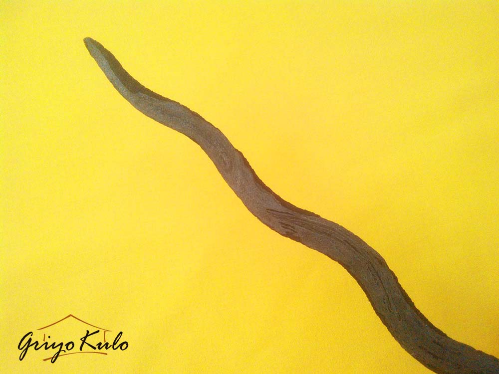 7. Dimensi : panjang bilah 34,5 cm, panjang pesi 6,5 cm, panjang total 41 cm